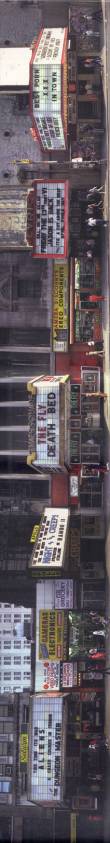 More central to the appearance of Times Square than the vendors, however, is the removal and zoning prohibition of “adult uses.”  Formerly, the pornographic movie theaters and bookstores in Times Square constituted much of its appearance, and were the aspect of its identity that most people found particularly objectionable.  Pornography raises a difficult set of questions involving free speech, community standards, and the exploitation of women.  Because of strong social norms against pornography, and prevailing attitudes against sexuality[10] in general, the 42nd Street Development Project expended large amounts of public funds to close “adult uses” along 42nd Street.  The City rejected a proposal by the pornographic businesses, which knew they were under pressure, which would have limited their visibility on the street.  Such limitations would have had the effect of conforming to the desired visual order without eliminating this social space.  Instead, the City adopted zoning regulations that prohibited pornography in all but two sites in Times Square.  In rather clear terms, the removal of pornography from Times Square reflected a strong set of social norms.